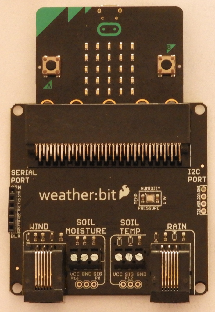 Rysunek 1. Moduł weather:bit, wraz z prawidłowo zamontowanym micro:bitem